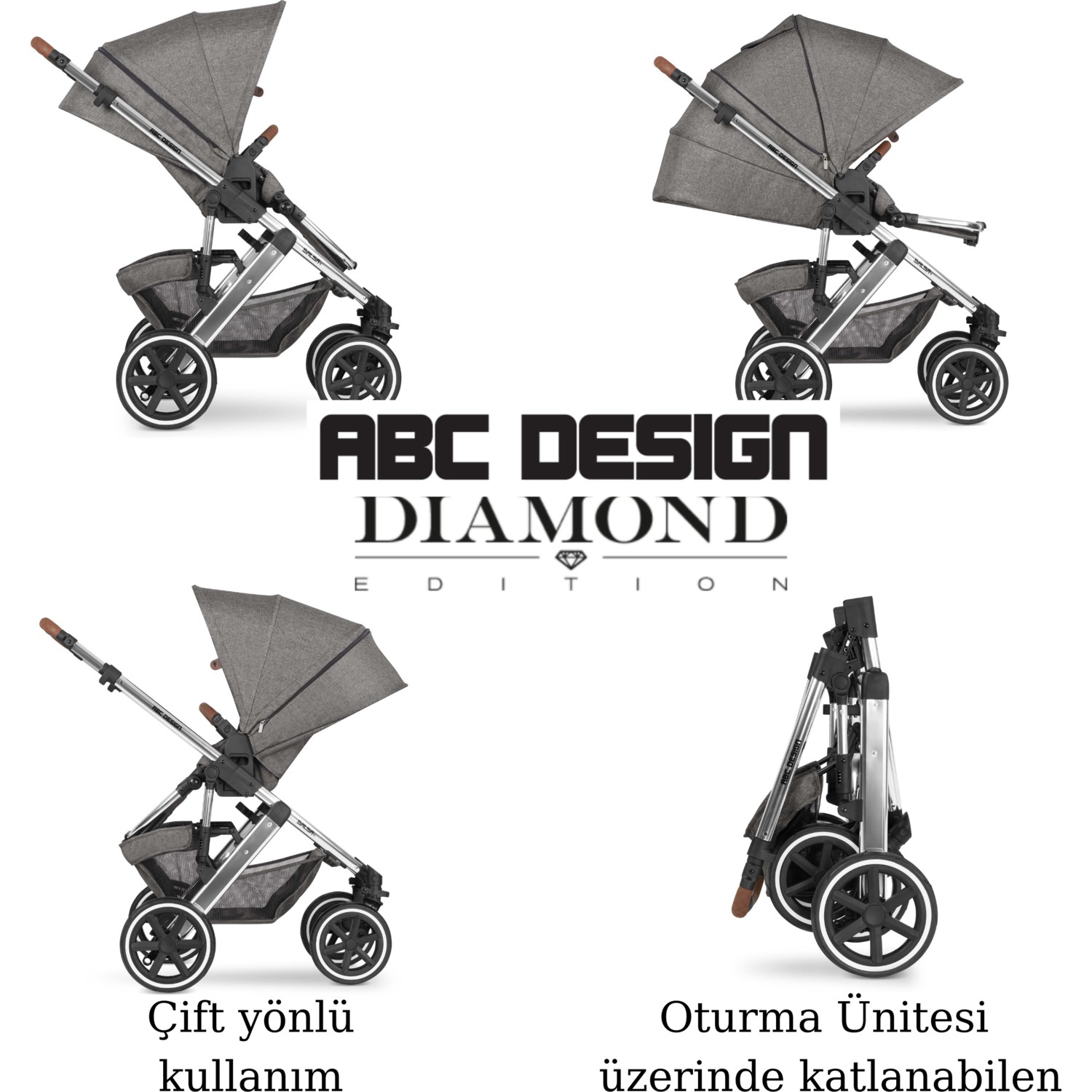 Abc Design Salsa 4 Diamond Set + Rose Portbebe ABC Design Salsa 4 DIAMOND EDITION Hissedebileceğiniz, hayran kalacağınız ve deneyimleyebileceğiniz saf şıklık ve en yüksek kalite *Portbebe ABC Design “ROSE – BEBEK PEMBESİ” renk seçeneği ile sunulmaktadır. “Salsa4 Diamond” dinamik, hafif ve manevra kabiliyeti son derece kolaydır. Hayatınız sizi nereye götürürse götürsün ilk gününüzden itibaren size ve bebeğinize güvenilir bir arkadaş… Kumaşlarımız söz konusu olduğunda üstün kaliteye odaklanıyoruz. Özenle seçilmiş kumaş, uzun yıllara dayanan uzmanlık ve kapsamlı testlerle garanti edebiliriz. Malzemenin, kumaş yapısının ve rengin mükemmel sinerjisi Diamond Edition’a benzersiz bir görünüm kazandırır. Tasarımın SADE ŞIKLIĞI, Diamond Edition’ın lüks ve seçkin silüetini tamamlıyor. Mükemmel Lüks Kaplama Fark yaratan küçük detaylar. Dikişli derideki elmas dikişi karmaşık ama çarpıcı. İtme ve koltuktaki dikişlerle birlikte benzersiz bir estetik cazibe yaratır. Gerçek bir karakter tasarımı için sofistike bir dokunuş. Çok kompakt katlama boyutu ve 22 kg’lık olağanüstü maksimum ağırlığı (koltuk ünitesi) ile şaşırtıyor. Döner ön tekerlekler çevikliğini artırır. Bilyalı rulmanlar ve entegre süspansiyon, en büyük maceralarda bile sürüşün yumuşaklığına katkıda bulunur. Salsa ile heyecan verici anların tadını çıkarın ve yaşam için hazine için canlı anılar oluşturun. Boyutlar: Açıkken (Uzunluk x Genişlik): 97 x 63 cm Şase Yüksekliği: 99,5 – 109,5 cm Kapalıyken(Uzunluk x Genişlik x Yükseklik):76,5 x 63 x 32 cm Oturma Ünitesi Boyutları (Uzunluk x Genişlik): 22 x 32 cm Arkalık Ölçüleri(Genişlik x Yükseklik): 32 x 54 cm Ön Tekerlek Boyutu: 20,5 cm Arka Tekerlek Boyutu: 28,5 cm Şase Ağırlığı: 8,4 kg Oturma Ünitesi Ağırlığı: 4 kg Oturma Ünitesiyle Total Ağırlık: 12,4 kg ABC Design Portbebe (Seyahat Yatağı)